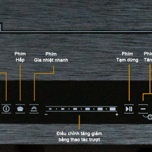 • Thao tác vuốt nhẹ để tăng giảm nhiệt/công suất, thuận tiện hơn so với điều khiển cảm ứng chạm-chọn thông thường. Màn hình hiển thị Led rõ ràng mức độ công suất được chọn.