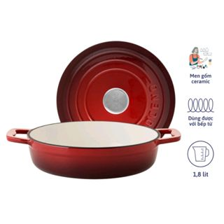 Nồi chảo gang 2-in-1 OCENO phủ men gốm màu đỏ cherry 22cm
